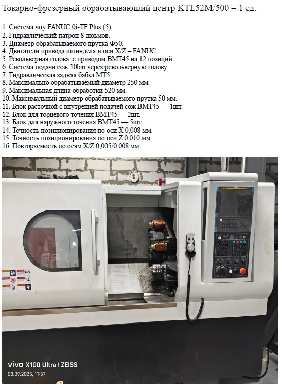 7 Токарно-фрезерный обрабатывающий центр KTL52M/500 = 1 ед.