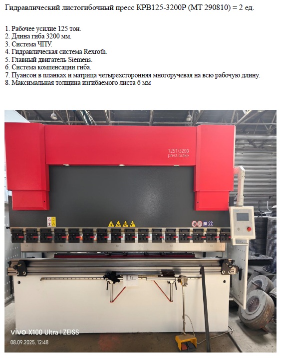 11 Гидравлический листогибочный пресс КРВ125-3200Р (МТ 290810) = 2 ед.