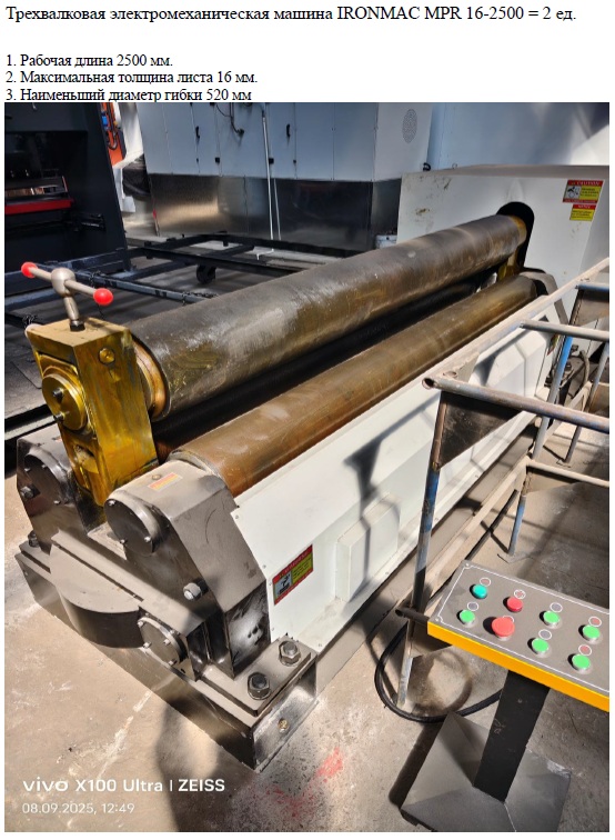 12 Трехвалковая электромеханическая машина IRONMAC MPR 16-2500 = 2 ед.