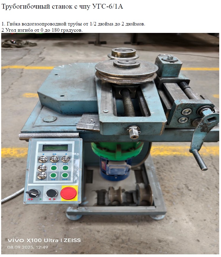 13 Трубогибочный станок с чпу УГС-6/1А =1 ед.